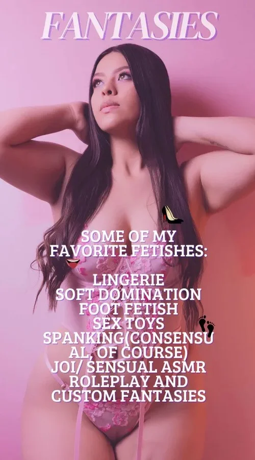 Algunos de mis fetiches favoritos: Lencería, Dominación suave, Fetiche de pies, Juguetes sexuales, Azotes (consensuados, por supuesto), JOI/ASMR sensual, juegos de rol y fantasías personalizadas, Estoy abierta a explorar nuevos deseos, siempre con respeto y conexión.😈😈