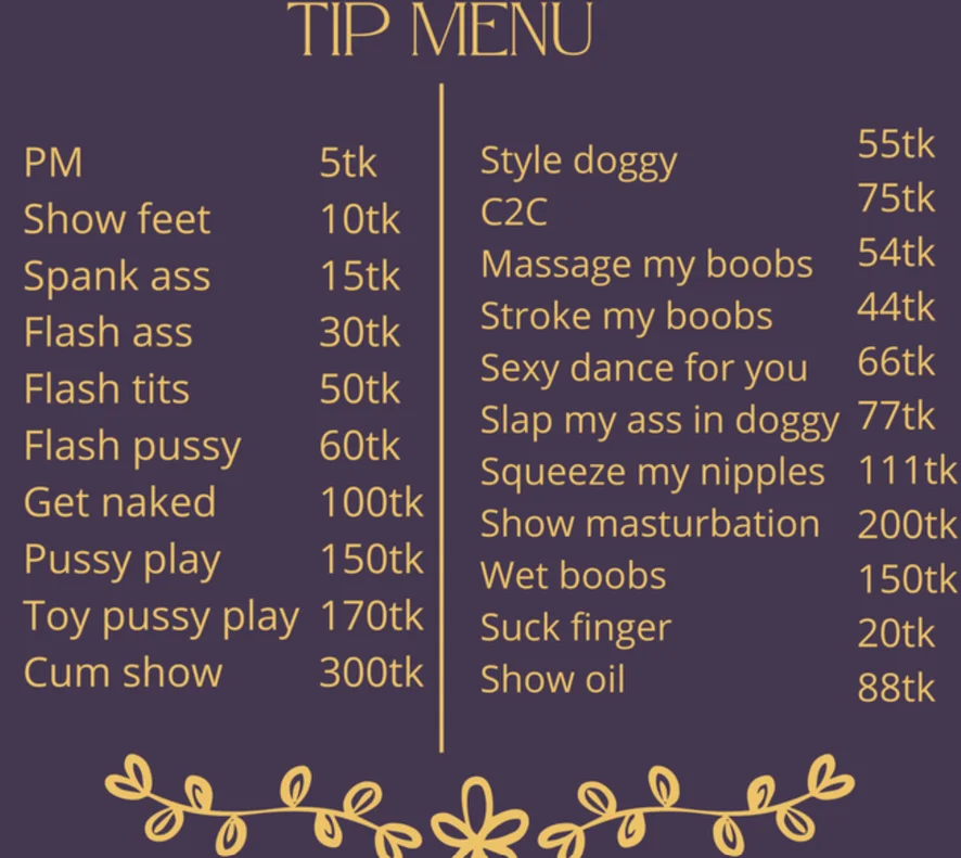 Doggy style, Dance érotique, Gode ou vibromasseur, Gorge profonde, Sextoys, Masturbation, Branlette, Fellation, Doigtage, Massage, Anulingus, Twerk, Strip-tease, Cunnilingus